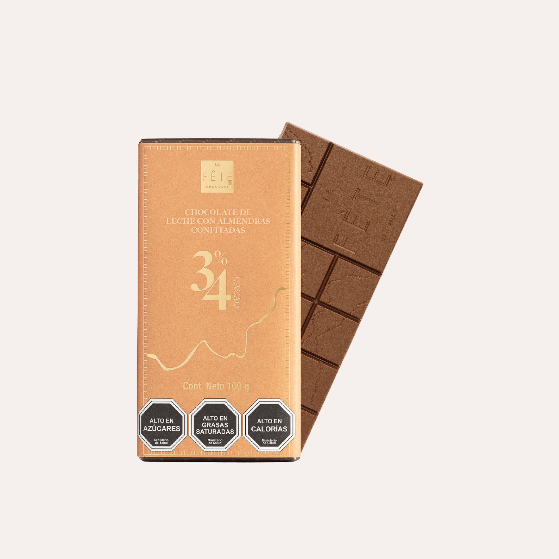 Exclusiva barra de chocolate de leche 34% cacao, elaborada con almendras confitadas que aportan notas tostadas y un delicado toque a caramelo.